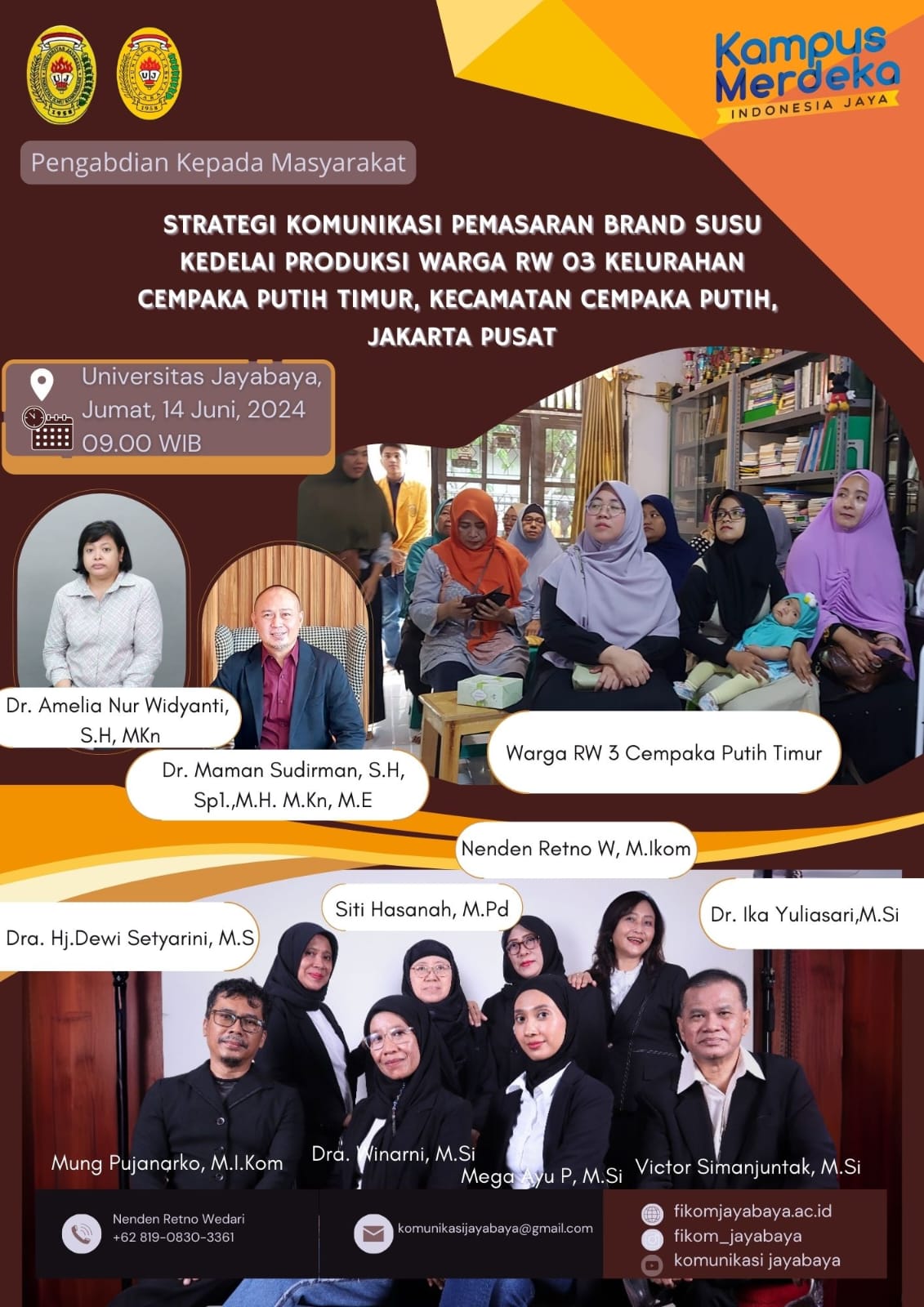 JAKARTA – Fakultas Ilmu Komunikasi Universitas Jayabaya mengadakan kegiatan pengabdian kepada masyarakat (PkM) bertema Strategi Komunikasi Pemasaran Brand Susu Kedelai di auditorium Magister Kenotariatan Universitas Jayabaya, Jakarta, Jumat (14/6).