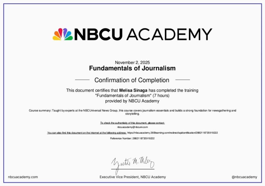 Selamat untuk Mel Sinaga, Mahasiswa FIKOM Jayabaya telah menyelesaikan sertifikasi ‘Fundamentals of Journalism’ dari NBCU Academy.