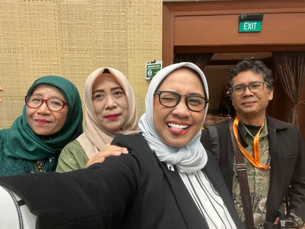 Hadir di JICC para Dosen FIKOM Jayabaya => Dari kanan ke kiri : Dekan FIKOM Dra.Winarni, M.Si., Wakil Dekan FIKOM : Nenden R. Wedari, M.I.Kom., Dosen tetap FIKOM Jayabaya : Ifdholia Muntriani, M.I.Kom., dan Mung Pujanarko, M.I.Kom.