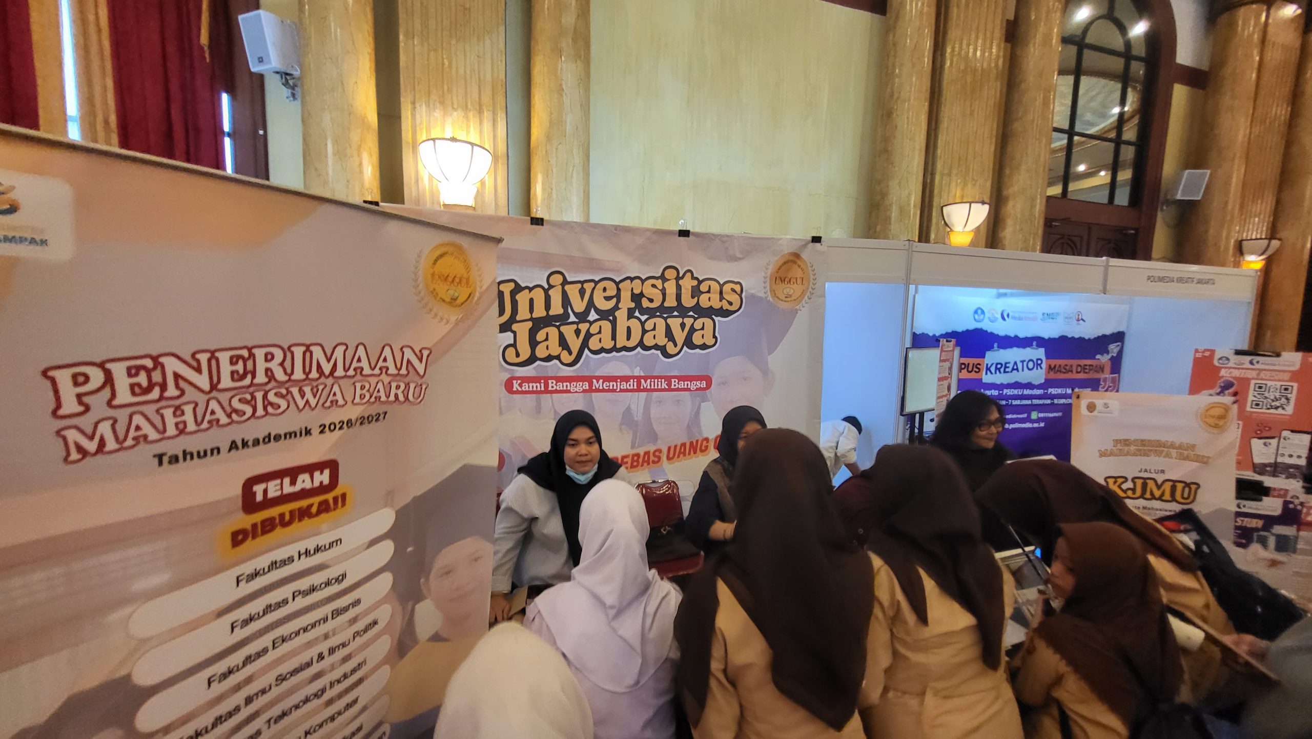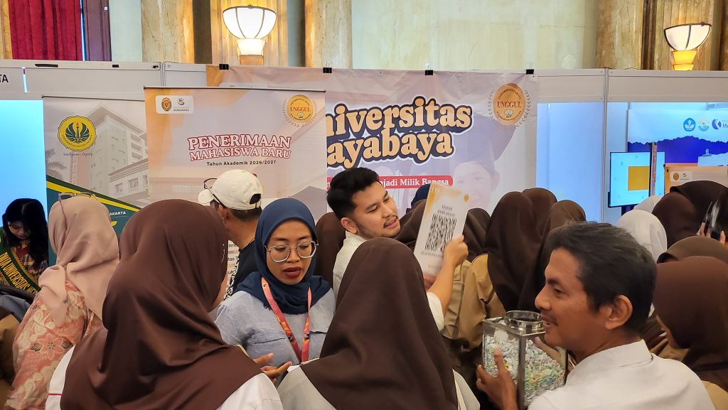 Jakarta|| KasuariTV – Memasuki hari ke-2 event ‘Edufair & Career Day – MGBK 2026’, para pengunjung yang mayoritas siswa-siswi kelas XII terpantau makin memadati venue ‘Edufair & Career Day – MGBK 2026’ yang digelar di Balai Samudera, Kelapa Gading, DKI Jakarta, hari Rabu (14/1/2026). Sejak Selasa (13/1/2026) kemarin booth stand Jayabaya konsisten melayani kebutuhan informasi bagi para siswa kelas XII yang sudah mulai mencari beasiswa.