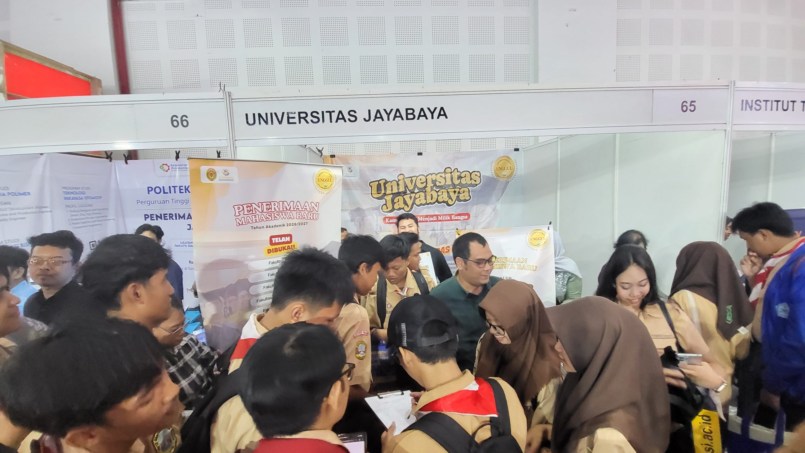 Para siswa terutama kelas XII mendatangi booth stand Universitas Jayabaya untuk memperoleh informasi selengkap-lengkapnya mengenai perkuliahan di Universitas Jayabaya.