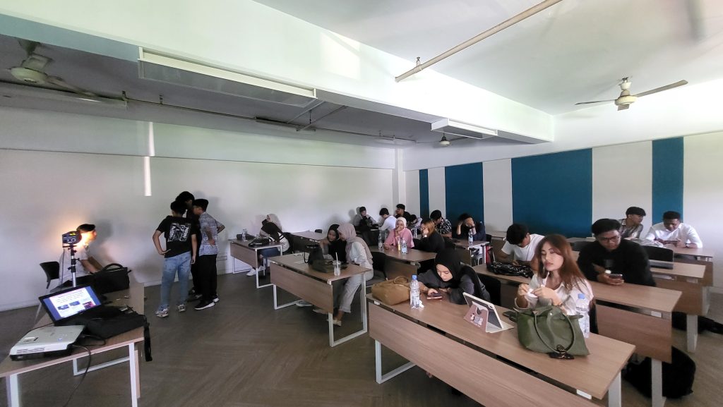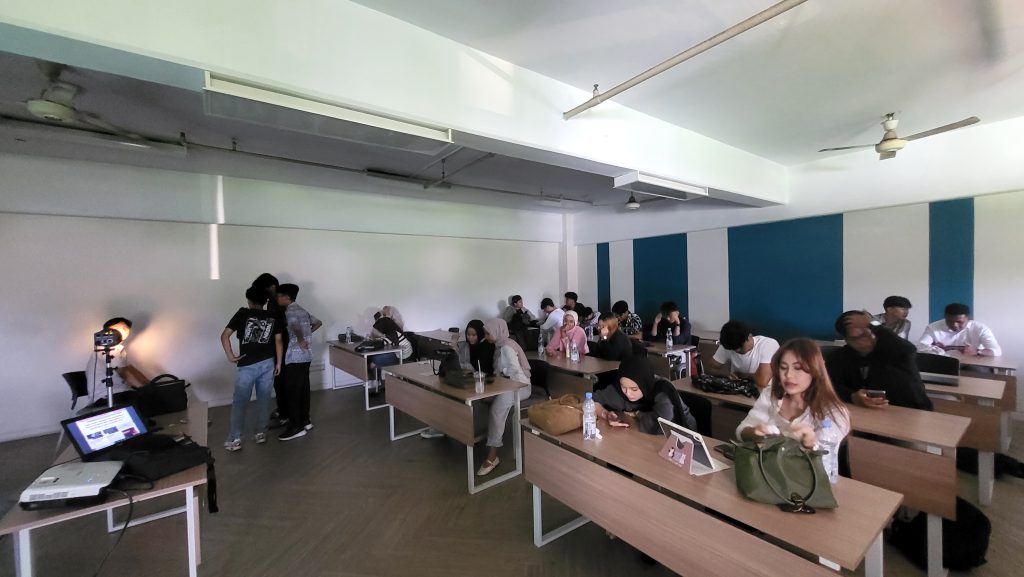 Peserta kegiatan merupakan mahasiswa FIKOM Jayabaya angkatan 2025 yang mengikuti mata kuliah fotografi. Mereka tampak antusias mengikuti penjelasan serta aktif berdiskusi mengenai teknik dan praktik yang akan dilakukan pada pertemuan selanjutnya.